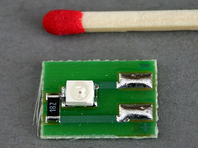 ![]() Art.Nr.: LED1410 Artikel: 7 von 49 | SMD-LED / 3-12V/ 6 mASMD-LED 3,5 x 3 mm, 3 - 12 V, 6 mA auf PlatineBetriebsspannung 3-12V, Stromverbrauch 6 mA, SMD-LED 3,5 x 3 mm auf Platine mit Vorwiderstand und Kabellötanschlüssen, superhell, Farbe orange-rot, Platine 14 x 10 mm, Gewicht 0,3 g. Für Modellbau und Modelleisenbahn, als Blinck- oder Signallicht. | |