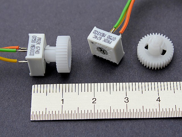 ![]() Art.Nr.: PTZ2K Artikel: 34 von 49 | Poti mit ZahnradPoti ohne Endanschlag 2 K OhmPräzisionspoti ohne Endanschlag (Drehbereich 360°), Widerstandswert 2 k Ohm/ Lin. / Maße 10 x 9,5 x 5 mm. Zahnrad Modul 0,3 / 37 Zähne / 11,7 mm Ø, mit Kreutzschlitz für Potisteuerung | |