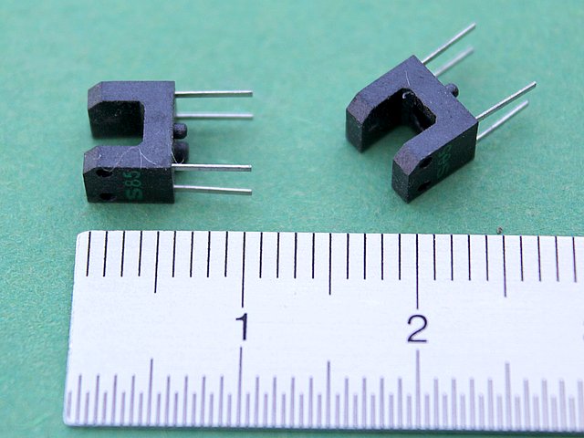 ![]() Art.Nr.: GLS85 Artikel: 36 von 49 | Gabellichtschranke 6,4 x 4 x 5,5 mmMiniatur-Gabellichtschranke EE-SX1106Optischer Kleinstsensor z.B. zur Erfassung von Drehzahl und /oder Geschwindigkeit, Farbmarkierungen etc. Auch verwendbar als berührungs- und kontaktloser Schalter. Technische Daten: Abm. (L x B x H) 6.4 x 4.2 x 5.4 mm, Umgebungstemperatur -25 - +85 °C, Wellen-Länge 950 nm, IC 30 mA , Anschluss Lötanschlüsse, IF 50 mA, Ptot 80 mW, UCEO: 30 V, UECO: 4,5 V, Schlitz-Breite 3 mm ±0,4 mm | |