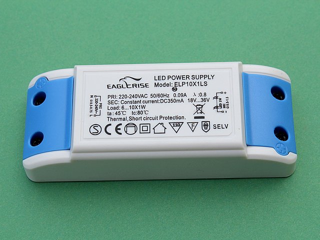 ![]() Art.Nr.: VGLED610 Artikel: 38 von 49 | Vorschaltgerät 240 VAC / 50 Hz / für 6 - 10 LED`sKonstantstrom-Vorschaltgerät für 6 oder bis zu 10 POWER-LEDsVorschaltgerät 240 VAC / 50 Hz / für 6 - 10 LED`s Konstantstrom-Vorschaltgerät für 6 oder bis zu 10 POWER-LEDs. Die Spannung wird automatisch auf 3,2 Volt pro LED angepasst und es fließt immer der Konstantstrom von 350 mA. Maße: (L x B x H) 115 x 45 x 27,5 mm, Gewicht 102 g | |