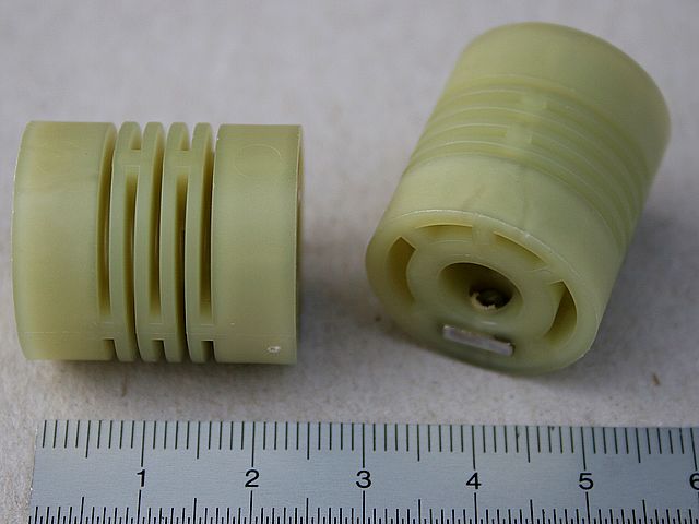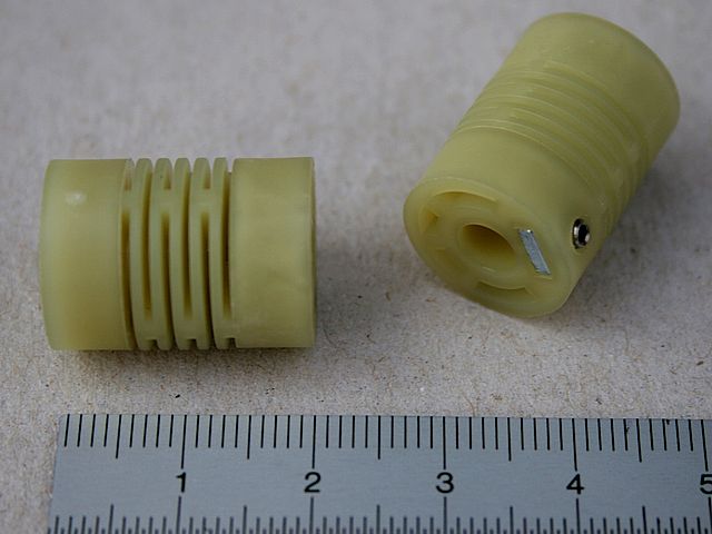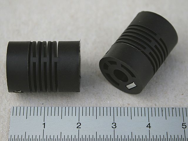 ![]() Art.Nr.: SK5515 Artikel: 2 von 7 | Stegkupplung Außen 15 Ø x 20 mmStegkupplung Innen 5 und 5 mm ØStegkupplung (Ausgleichselement) für Wellen 5 und 5 mm Ø Werkstoff Polyamid 6.6 / glasfaserverstärkt. Biegeelastisches Verbindungselement für die Antriebstechnik. Stegkupplungen sind aus einem Stück in Spritztechnik hergestellte zylindrische Rotationskörper. Geeignet für Drehzahlen bis ca. 14000 Upm, Drehmoment bis 20 Ncm, Gewicht 3,5 g, Außen Ø 15 mm, Länge 20 mm, Innen 5 und 5 mm Ø. | |
