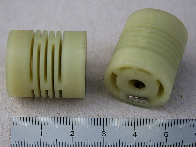 ![]() Art.Nr.: SK4515 Artikel: 1 von 7 | Stegkupplung Außen 15 Ø x 20 mmStegkupplung Innen 4 und 5 mm ØStegkupplung (Ausgleichselement) für Wellen 4 und 5 mm Ø, Werkstoff Polyamid 6.6 glasfaserverstärkt. Biegeelastisches Verbindungselement für die Antriebstechnik. Stegkupplungen sind aus einem Stück in Spritztechnik hergestellte zylindrische Rotationskörper. Geeignet für Drehzahlen bis ca. 14000 Upm, Drehmoment bis 20 Ncm, Gewicht 3,5 g, Außen Ø 15 mm, Länge 20 mm, Innen 4 und 5 mm Ø. | |