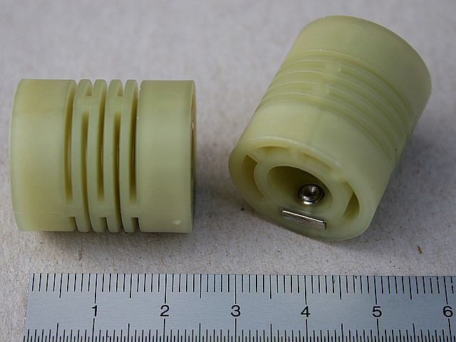 ![]() Art.Nr.: SK8822 Artikel: 5 von 7 | Stegkupplung Außen 22 Ø x 25 mmStegkupplung Innen 8 und 8 mm ØStegkupplung (Ausgleichselement) für Wellen 8 und 8 mm Ø, Werkstoff Polyamid 6.6 / glasfaserverstärkt. Biegeelastisches Verbindungselement für die Antriebstechnik. Stegkupplungen sind aus einem Stück in Spritztechnik hergestellte zylindrische Rotationskörper. Geeignet für Drehzahlen bis ca. 14000 Upm, Drehmoment bis 30 Ncm, Gewicht 9,8 g, Außen Ø 22 mm, Länge 25 mm, Innen 8 und 8 mm Ø. | |