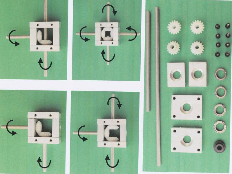 ![]() Art.Nr.: WG355 Artikel: 113 von 113 | Winkelgetriebe für ModellbauWinkelgetriebe als Universalbausatz für Modellbau und HobbyWinkelgetriebe als Universalbausatz. Merkmal sind die winklig zueinander stehenden An- und Abtriebswellen, deren Achsen einen gemeinsamen Schnittpunkt besitzen. Je nach Zusammenbau der einzelnen Komponenten können verschiedene Variationen entstehen. Die Wellenlängen (Messingwelle 5 mm Ø x 500 mm) können nach Bedarf selbst auf gewünschte Längen zugeschnitten werden. Gehäuse Maße: ( L x B x H ) 38 x 38 x 30 mm. Bausatzmaterial: 2 Gehäuseteile 38 x 30 x 8 mm mit Befestigungsgewindebohrungen M 3, 2 Gehäuseteile 30 x 22 x 8 mm, 4 Kegelräder Azetalharz Modul 1,0, 4 Kugellager 15 x 10 x 4 mm, 1 Gleitlager 15 x 5 x 8, 8 Montage Schrauben M 4 x 14, 1x Messingwelle 5 mm Ø x 500 mm, Bauanleitung. Drehmoment bis ca. 1,5 Nm, Drehzahlen bis ca. 5000 Upm. Gewicht je nach Ausführung 80 - 92 Gramm. | |