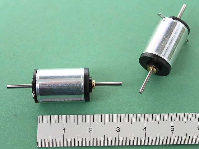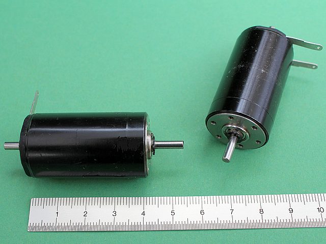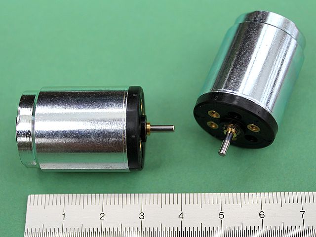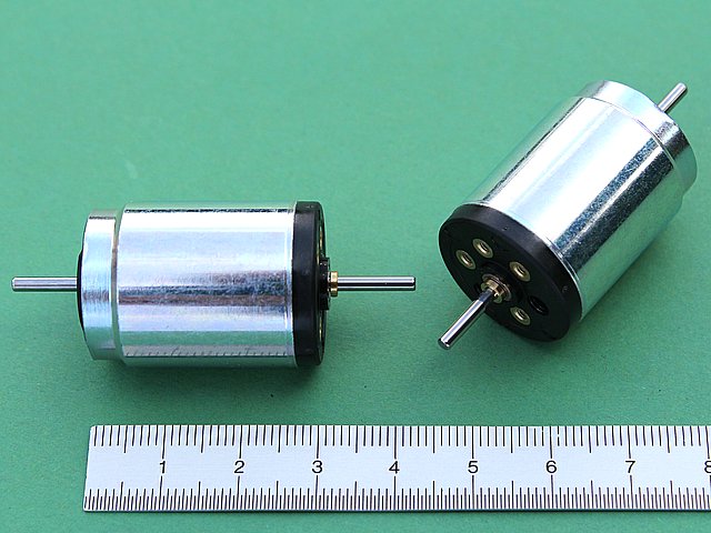 ![]() Art.Nr.: 2017R012 Artikel: 12 von 20 | Glockenankermotor Modelleisenbahnmotor nach MIBA SPEZIAL 71Glockenankermotor nach UmbaubeschreibungGlockenankermotor NACH MIBA SPEZIAL 71 / Nennspannung 12 Volt, Betriebsspannung 0,2 -18 Volt, Leistung 0,4 Watt, Leerlaufdrehzahl 12 700 Upm, Leerlaufstrom 11 mA, Max. empfohlener Dauerstrom 100 mA, Anhalte-Drehmoment 1,1 mNm, Wirkungsgrad 56 %, Maße: 20 mm Ø x 17 mm länge, montiertes Ritzel Modul 0,4 / 8 Zähne / 4 mm Ø , (dieses Ritzel passt 100 % zum Originalgetriebe), Gewicht 21 g. Hinweis: Unser Sonderpostenmotor Art.Nr.S2017R0412 zum Sonderpreis ist leider vergriffen. Dieser angebotene Motor gilt als Nachfolger, stammt aus laufender Fertigung und ist in beliebigen Stückzahlen lieferbar. Umbauvorschläge siehe www.stummifohrum.de | |