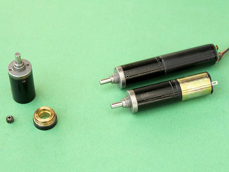 ![]() Art.Nr.: PG1366 Artikel: 31 von 80 | Planetengetriebe 66:1Planetengetriebe 13 mm Ø x 29 mm / Welle 3 mm ØStahl- Planetengetriebe 66 : 1 / mit Montagezubehör und Motorritzel, Zahnräder Modul 0,25, Zähnezahl des Hohlrades 43, Maße: 13 mm Ø x 29 mm, Welle 3 mm Ø, Gewicht 19 g, Passende Motoren: Faulhaber 1319T006SR / 1319T012SR / 1331T006SR / 1331T012SR / 1516T.. /1524T.. / 1717T.. / 1724T.., oder verschiedene Eisenankermotoren mit 12 - 13 mm Ø. Abbildung zeigt das Getriebe mit Montagezubehör und Getriebe montiert an verschiedenen Motoren. Lieferung erfolgt ohne abgebildete Motoren ! | |