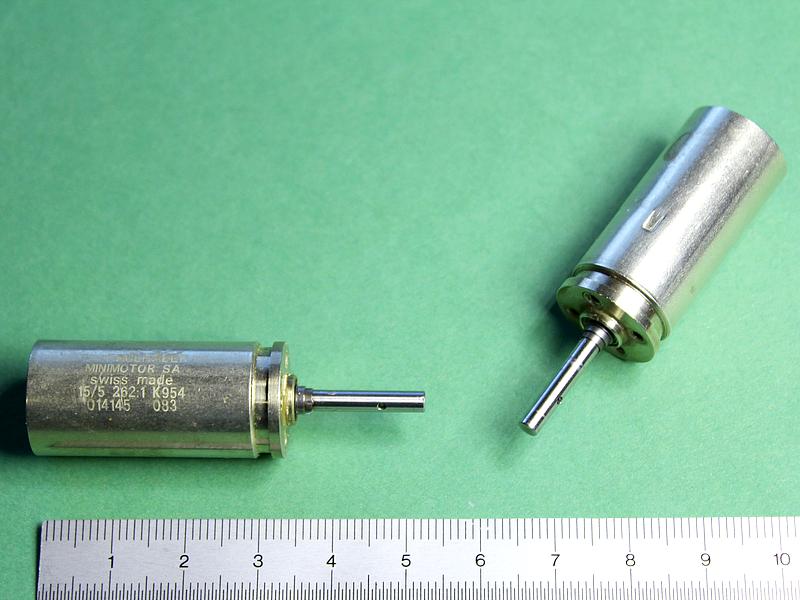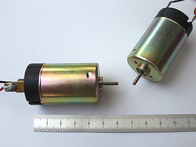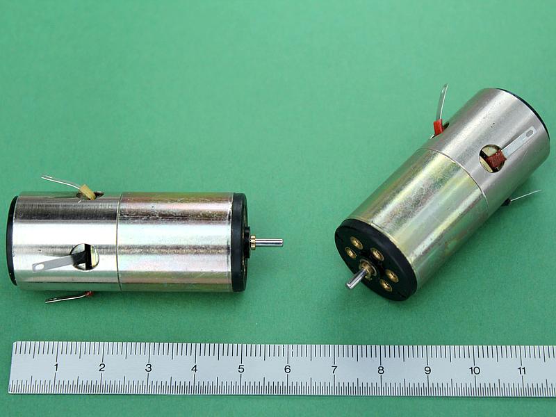 ![]() Art.Nr.: S2342L18 Artikel: 12 von 80 | Glockenankermotor 18 Volt / 23 Ø x 42 mm / 4 WattGlockenankermotor 2342L018CFaulhaber Glockenankermotor 2342L018C. Nennspannung 18 Volt, Betriebsspannung 0,2-24 Volt, Leerlaufdrehzahl 8000 Upm, Stromaufnahme 35 - 500 mA / Leistung 4 W, Welle 3 Ø x 10 mm Länge, mit Ritzel M 0,5/12 Zähne (Ritzel kann bei Bedarf von uns entfernt werden , Bitte bei Bestellung mit angeben), zweites Wellenende mit Messingscheibe für Schwungm. Gewicht 88g. Auch als Generator sehr gut geeignet ! Generatorspannung 440 Upm pro Volt, eine helle LED leuchtet bei 1420 Upm. | |