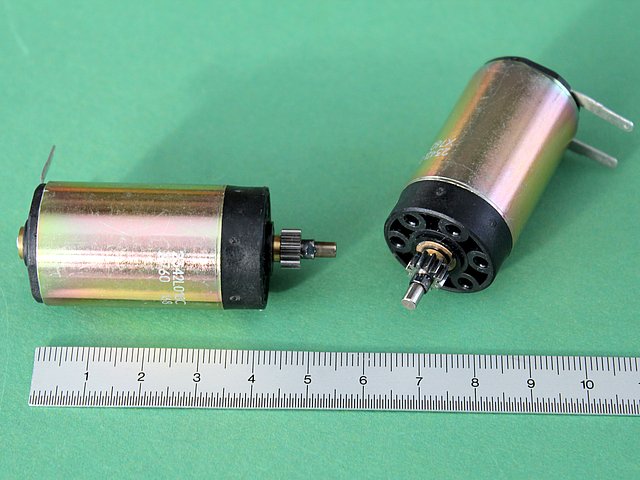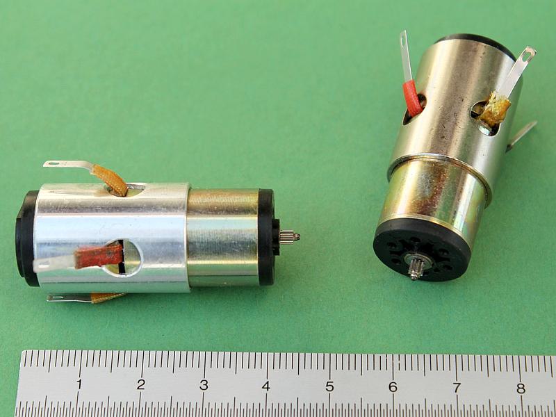 ![]() Art.Nr.: ICC2733 Artikel: 4 von 80 | MotorUniversalmotor (auch als Modelleisenbahnmotor geeignet)UNIVERSAL - MOTOR (mit Ringmagnet) auch als Modelleisenbahnmotor geeignet, Nennspannung 12 Volt, Betriebsspannung 3 - 18 Volt, Leerlaufstrom 35 mA, max. Stromaufnahme 0,7 A, Leerlaufdrehzahl 3800 Upm, max. Leistung 1,7 Watt, Welle 2,3 mm Ø, Ritzel Modul 0,4, 12 Zähne, 5,7 mm Ø, Maße: 27,5 Ø x 35 mm Länge, Gewicht 57 Gramm. Motor kann am Gehäuse leichte Korrosionsspuren aufweisen. | |