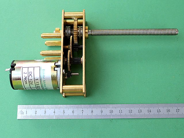 ![]() Art.Nr.: BMS70 Artikel: 25 von 80 | Motor, Getriebe und HubspindelBühler-Motor mit Getriebe und HubspindelBÜHLER-Motor 12 Volt / 3000 Upm / 2 Ncm / 10 Watt, 31 mm Ø x 54 mm. Getriebe 42 :1 Material Messing, Spindel 8 mm Ø x 100 mm, Steigung 1,5 mm, doppelseitig mit Drucklagern gelagert , Drehrahl bei 12 Volt 70 Upm, Maße: (L x B x H) 90 x 31 x 80 mm, Gewicht 400 Gramm. | |
