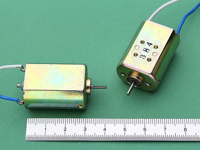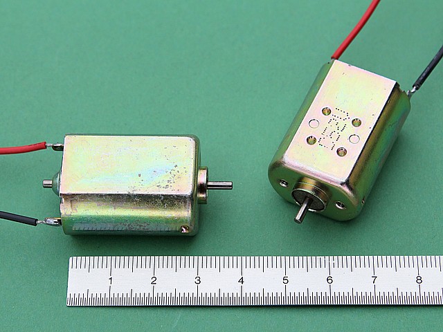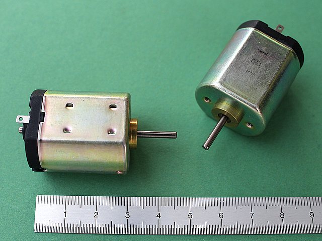 ![]() Art.Nr.: 10UMS1227 Artikel: 45 von 80 | 10 Stück Universalmotoren FF-050SHMotoren für: Modellbau, Schulen, Experimente10 Stück Universal Modellbaumotoren 1-3 Volt. Ein Motor für alle Einsatzzwecke wie: Schiffsmodellbau, Automodellbau,Sonderfunktionen, Techn.-Spielzeug, Eigenkonstruktionen, Schule, usw. Versiberter Kommutator, versilberte Bürsten, Rotor 3 polig, Sinterlager. Technische Daten: Nennspannung 1,2 Volt / 220 mA / 9 000 Upm. Betriebsspannung 1 - 3 Volt, Gewicht 16 Gramm, Maße: ( L x B x H ) 27 x 15,5 x 12 m, Welle 1,5 mm Ø x 9,5 mm Länge, Befestigung 2 x M2, Daten bei Betriebsspannungen:1 Volt= 7 300 Upm, 210 mA / 1,2 Volt= 9 000 Upm, 220 mA / 2 Volt= 16 000 Upm, 260 mA / 3 Volt= 23 700 Upm / 320 mA, empf. max. Stromaufnahme bis 1600 mA, Drehmoment 10 g/cm. Motor für Schulen: Dieser Motor eignet sich für verschiedene Versuche, Experimente, Antriebe | |