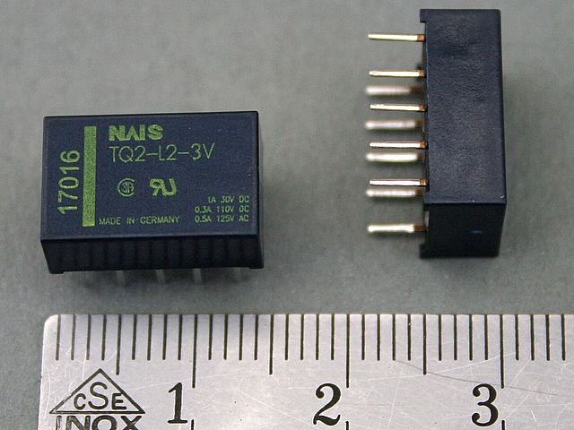 ![]() Art.Nr.: RL3BS Artikel: 50 von 69 | Kleinrelais / BistabilUmschaltrelais für SolarwettbewerbautosAnwendungsbeispiel: Fahrtrichtungsumschaltung für Solarautos, 2 Spulen, Spulenspannung 3-5 Volt, Kontakte 2 x Um, 14 x 9 x 5 mm, Gewicht 1,3 Gramm. Lieferung erfolgt mit Schaltplan. | |