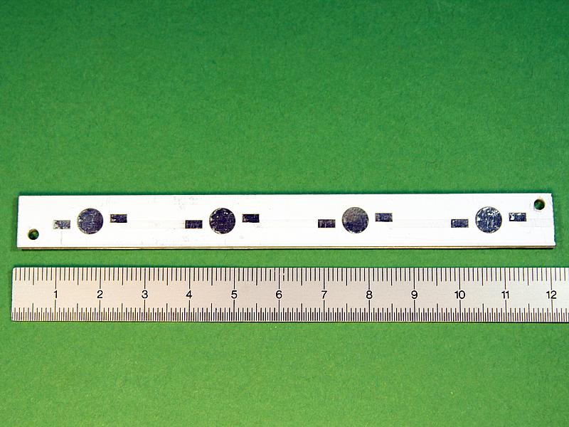 ![]() Art.Nr.: PLED4 Artikel: 60 von 69 | LED-PLATINE und KÜHLKÖRPER für 4 LEDAluplatine mit Lötpunkten für vier POWER-LEDAluplatine mit Lötpunkten für vier POWER-LED, Maße: (L x B x H) 120 x 12 x 1,7 mm, leichte Montage durch 2 x M3 Gewinde. Geeignet für 12 Volt Betriebsspannung. Lieferung ohne LED ! | |