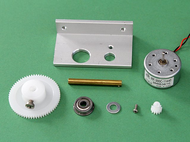 ![]() Art.Nr.: LE42 Artikel: 5 von 11 | Solar-Getriebemotor für SolarautosSolar-Getriebemotor Bausatz für SolarmodelleSolar-Getriebemotor Bausatz für Solarautos Technische Daten: Betriebsspannung 0,5 - 6 Volt, Stromaufnahme 25 - 150 mA, Abgangsdrehzahl bei 1,5 Volt = 340 Upm, Abgangsdrehzahl bei 3 Volt = 730 Upm, Gewicht 48 Gramm. Material:1 Aluwinkel 55 x 30 x 15 mm, 1 Solarmotor 24,5 mm Ø x 13 mm, 1 Kugellager mit Bund 12 x 4 x 4 mm, 1 Abtriebswelle 4 mm Ø x 35 mm, 1 Motorritzel Azetalharz Modul 0,5 / 12 Zähne, 1 Abtriebswellezahnrad Azetalharz Modul 0,5 / 65 Zähne, 1 Unterlagscheibe 4 mm, 1 Schraube M 4 x 6, 1 Schraube M 1,6 x 5 mm. Als Räder für Solarautos empfehlen wir unsere Klemmnabenräder Art.Nr. SFR46. Als Solarmodule für Solarautos empfehlen wir unsere flexiblen Solarmodule Art.Nr. FSM15400 oder Art.Nr. FSM03400. Für die Vorderachse empfehlen wir Messingrohre Art.Nr. MR4030 und Art.Nr. MR5041. | |