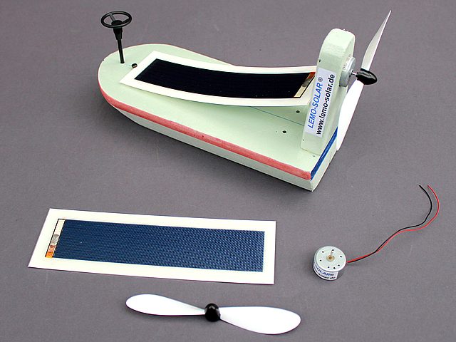 ![]() Art.Nr.: MSLB400 Artikel: 1 von 11 | SOLAR-ANTRIEBS-SETSOLAR-ANTRIEBS-SET für LuftschraubenbooteHinweis für Schulen: Bei unseren Solar-Anriebs-Sets ist das Material auf optimale Funktionstüchtigkeit zusammengestellt. Die Gestaltung der Solarmodelle überlassen wir dem Schüler und Lehrer. Jedem Materialset liegt eine ausführliche Beschreibung mit Bauvorschlägen bei. Mit diesem Material können kleine Solar-Luftschraubenboote gebaut werden, welche bei bewölktem Himmel einer Einstrahlung von nur 80 W/m² schon schwimmen. Bei Sonnenschein haben wir eine Einstrahlung von 1000 W/m², bei Tag und Regenwetter haben wir eine Einstrahlungsstärke von ca. 70 - 100 W/m². Materialsatz bestehend aus: 1 Solarmodul, Nennspannung 1,5 Volt, Leerlaufspannung 2,25 Volt, Kurzschl.-Strom 400 mA, Nennstrom 340 mA, Leistung 0,5 Watt (peak), Maße: (L x B x H) 197x 60 x 1,5 mm, Gewicht 18 g. 1 Solarmotor, Anlaufspannung 0,25 Volt, Leerlaufstrom 17 mA, Imax. 150 mA, empfohlene Betriebsspannung 0,5 - 6 Volt, Gewicht 23 g, Maße: 25 mm Ø x 13 mm Länge , Welle 2 mm Ø. 1 Luftschraube, 130 mm Ø x 19 mm, Farbe weiß, Nabe schwarz mit passender Bohrung für Solarmotor. | |
