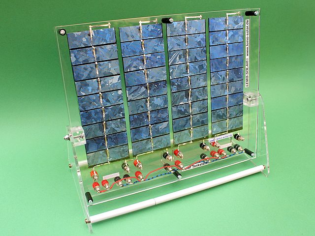 ![]() Art.Nr.: SM02725 Artikel: 31 von 45 | Universal SolarmodulSolarmodul für Schulen, Experimente, Antrieb für Solarmodelle, VersucheUniversal Solarmodul-Bausatz für Schulen, Experimente, Antrieb für Solarmodelle, Versuche. Technische Daten: Leerlaufspannung 2,44 Volt, Nennspannung 2,0 Volt, Kurzschlussstrom 725 mA, max.-Ladestrom, 680 mA, Leistung 1364 mWatt, 4 Solarzellen a` 52 x 39 mm in Serienschaltung, Maße: (L x B x H) 200 x 75 x 9 mm, Gewicht 124 Gramm. Material: 3 Plexiglasplatten, 4 Solarzellen, 2 Lötösen, 2 Schrauben M 3 x 3, Solarzellen Lötverbinder, Lötzinn, 1 doppelseitiges Klebeband, 1 Kabellitze, 1 Schlauchbinder (Zugentlastung), 4 Schrauben M 3 x 10, Anleitung. | |