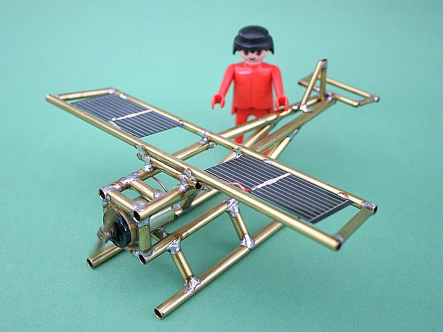 ![]() Art.Nr.: 2004 Artikel: 34 von 45 | Solar-FlugzeugLötbausatz aus MessingrohrenSolar - Flugzeug (Lötbausatz), Material: Glockenanker-Solarmotor, Qualitäts-Solarzellen, Messing-Rohre-Profile, Lötzinn, ausführliche Anleitung. Maße: (L x B x H) 160 x 165 x 65 mm. Solarmodell aus Messingrohren gelötet wie dies geschieht beschreibtimmer die ausführliche Bauanleitung mit Montageschablone im Maßstab 1 : 1 | |