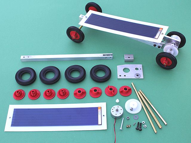 ![]() Art.Nr.: SA5016 Artikel: 10 von 45 | Solar-Auto mit NachlenksystemSolarauto mit LichtnachlenksystemEin Solarauto, welches der Sonne oder Lichtquelle (z.B. Handscheinwerfer) nachfährt. Material: 2 Glockenanker- Getriebemotoren, 2 Halterungen, 4 Solarzellen, Klebeband, 3 Leichtlaufräder, 3 Acryl-Platten (Laser zugeschnitten mit allen Bohrungen und Gewinde), ausführliche Anleitung. Maße: (L x B x H) 250 x 150 x 150 mm, Gewicht 270 g | |