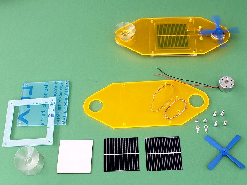 ![]() Art.Nr.: SET6020 Artikel: 38 von 45 | SOLARSET für Schulenfunktionstüchtig bei Einstrahlungsstärke von nur 19 W/m²SOLARSET für Schulen, funktionstüchtig bei Einstrahlungsstärke von nur 19 W/m², (bei Tag und Regenwetter haben wir eine Einstrahlungsstärke von ca. 70 - 100 W/m²). Bausatz bestehend aus: Solarzelle 0,6 Volt / 900 mA (52 x 52 mm), Solarmotor 0,3 Volt / 15 mA, Luftschraube 70 mm Ø, Scharniergehäuse mit Schnappverschluss 68 x 68 x 9,5 mm, Solarzellenklebeband, Lötzinn. | |