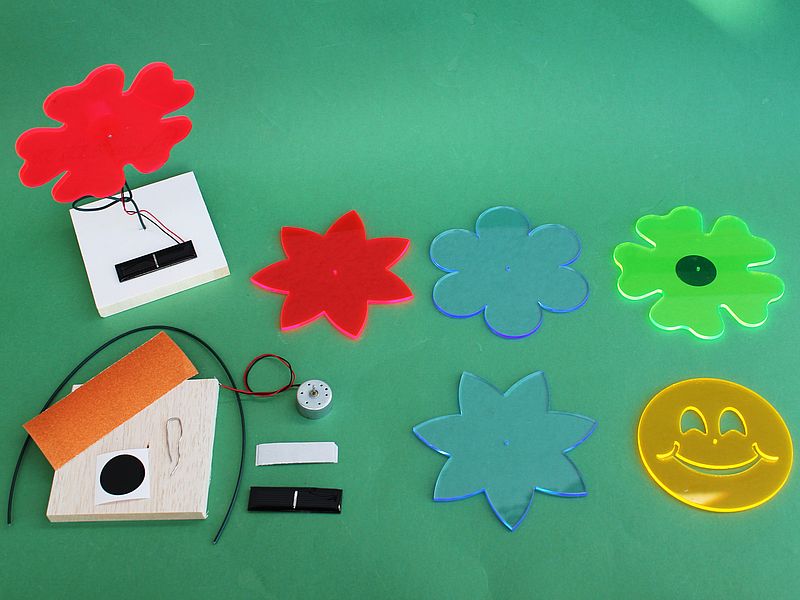![]() Art.Nr.: BLUME6020 Artikel: 4 von 45 | SOLAR BLUME mit WahlmotivenSolar Bausatz für Schulen, Bastelgruppen, WerbegeschenkSOLAR BLUME mit Wahlmotiven. Einfacher Bausatz für: Schulen, Bastelgruppen, Werbegeschenk. Die Solarzelle erzeugt Solarstrom für den Solarmotor, welcher die Solarblume (Lisa PLexischeibe) dreht. Lisamaterial sammelt Licht auf seiner Oberfläche und strahlt es an den Kanten ab. Bausatz Bauteile: Solarmotor Art.Nr.6020 / Anlauf bei 0,25 Volt / 15 mA / Imax 190 mA / empfohlene Betriebsspannung 0,3 - 6 Volt / Maße: 25 mm Ø x 13 mm Länge / Welle 2 mm Ø x 10 mm Länge / Gewicht 23 g, vergossene Solarzelle Art.Nr.SZL05150 / 0,5 V / 150 mA mit Lötanschlüssen / Maße: 60 x 17 x 2 mm / Gewicht 3 g, Balsaholzplatte 100 x 100 x 10 mm, Gärtnerdraht 400 x 2 mm, doppelseitiges Klebeband 60 x 17 mm, Lötzinn, Schleifpapier, Bauanleitung. Motive aus: PLEXI Lisamaterial, (Lisamaterial sammelt Licht auf seiner Oberfläche und strahlt es an den Kanten ab). Motiv Blume 1 / ROT 120 mm Ø , Motiv Blume 2 / BLAU 120 mm Ø, Motiv Kleeblat GRÜN 120 mm Ø, Motiv Smilie GELB 10 mm Ø, Motiv Blatt BLAU 120 mm Ø. Gewünschtes Motiv bei Bestellung angeben ! | |