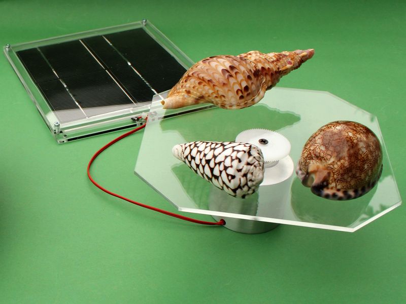 ![]() Art.Nr.: SDB20K Artikel: 3 von 4 | Solar-Drehbühne mit Tragkraft 20 kgSolar-Drehbühne. Bewegung weckt AufmerksamkeitSolar- Drehbühne für bestaunenswerte Objekte, mit Tragkraft 20 kg auf hochwertigem Plexiglasfuss. Bewegung weckt Aufmerksamkeit, Teile bekommen ein Eigenleben. Material: Glockenanker Getriebemotor, polierter Plexiglas-Block 100 x 100 x 35 mm, Drehplatte 170 x 170 x 5 mm, Solarzelle 0,6 Volt / 8700 mA, Maße 156 x 156 mm eingerahmt zwischen 2 Plexiglasplatten. Sie werden staunen wie wenig Licht diese Drehplattform benötigt. Durch Einsatz von hochwertiger Technik dreht sich diese Drehbühne bei Tag und Regenwetter auf der Fensterbank. Hinweis: Dies ist unser Original, wir haben die Idee beim Patentamt unter Nr. G 9410457.3 angemeldet. Bei den von anderen Herstellern Nachgebaute, handelt es sich um Raubkopien. | |