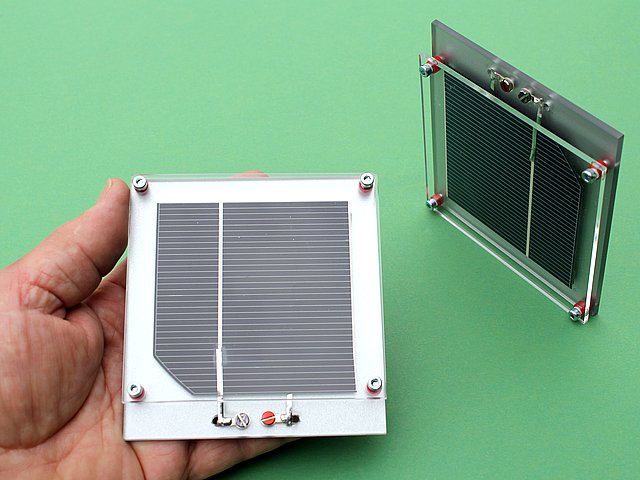 ![]() Art.Nr.: SM12930 Artikel: 12 von 34 | SOLARMODUL 12 Volt / 15,5 WattBausatz SOLARMODUL 12 Volt / 930 mA / 15,5 WattBausatz SOLARMODUL, Technische Daten: Nennspannung 12 Volt, Leerlaufspannung 21,4 Volt, Kurzschlussstrom 966 mA, Nennstrom 930 mA, Leistung 15,5 Watt. Maße: 445 x 310 x 9 mm, Gewicht 1090 Gramm. Alle 35 Solarzellen a` 52 x 52 mm sind in fünf Reihen in Serie verschalten. Der Aufbau wird in der Anleitung erklärt. Bausatz Material: PLEXIGLAS Grundplatte, Zwischenrahmen, Deckplatte, 37 Solarzellen (2 x Reserve), 5 Solarzellen Klebebänder, Solarzellen Lötverbinder, Lötzinn, 10 Inbusschrauben M 3 x 8, 2 Schrauben M 3 x 3, Lötösen. | |