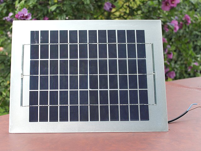 ![]() Art.Nr.: SM1236 Artikel: 30 von 34 | Solarmodul 12V / 36 mADünnschicht Solarmodul 12V / 36 mASolarmodul 12V / 36 mA, Aufbau: Glasbeschichtung, Anschluß über Lötanschlusse. Einsatzgebiete: Experimente, Modellbau, Schulen, Akkuladung , usw., Leerlaufspannung 24 Volt, Nennspannung 12 Volt, Kurzschlußstrom 36 mA, Nennstrom 34 mA, Maße: (L x B x H) 163 x 73 x 1,2 mm, Gewicht 38g | |