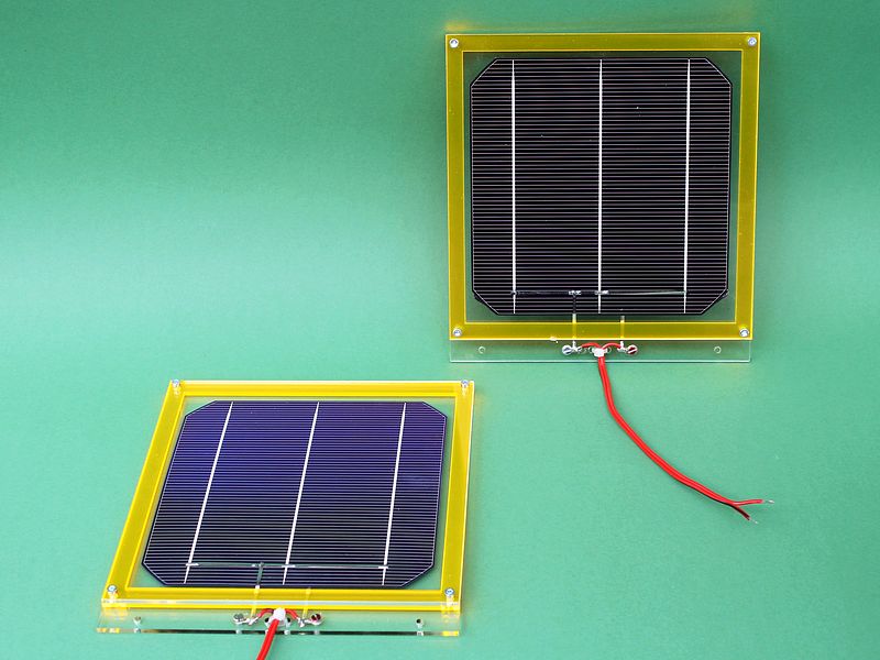 ![]() Art.Nr.: SM02838 Artikel: 9 von 34 | Eingerahmtes Solarmodul 2 V / 838 mASolarmodul (Fertigmodul) 2 V / 838 mA / 1568 mWEingerahmtes Solarmodul 2 V / 838 mA / 1568 mW, 4 Solarzellen 78 x 31 mm Monokristallin. Staubdicht eingerahmt durch Rahmen zwischen der Deck- und Grundplatte (PLEXIGLAS), Leerlaufspannung 2,44 Volt, Nennspannung 2,0 Volt, Kurzschlussstrom 838 mA, Nennstrom 785 mA, max. Leistung 1568 mWatt, Gehäuse 170 x 105 x 7 mm. Gewicht 130 g. Einsatzgebiete: Modellbau, Schulen, Modellbau, Energieversorgung von Solarmodellen, Freizeit, Baukästen, usw. Standardmessbedingungen bei Solarzellen: Lichtspektrum AM 1,5, Bestrahlungsstärke E = 1000 Watt / m², Zellentemperatur 25 C°. | |