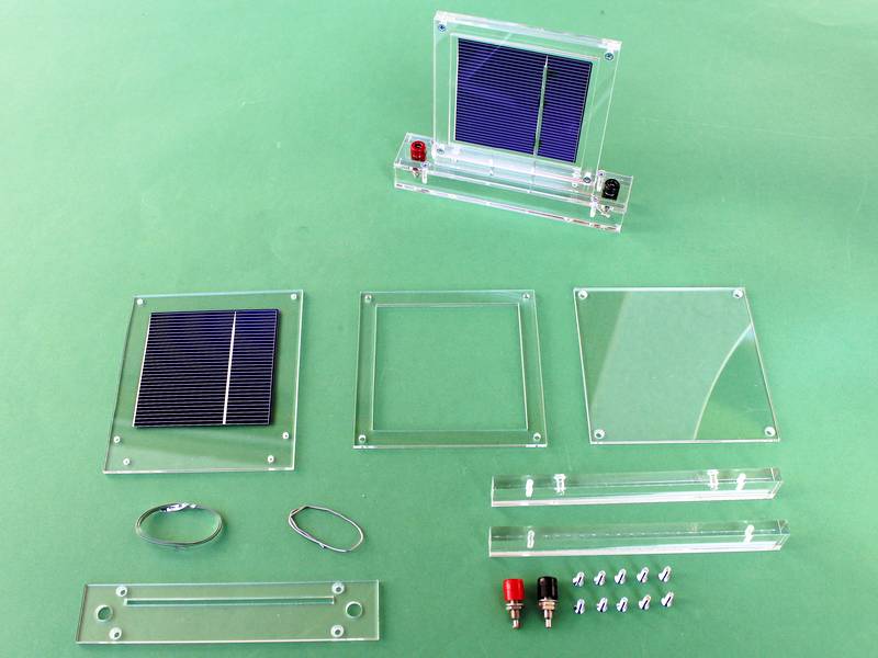 ![]() Art.Nr.: SL522612 Artikel: 8 von 34 | Universal Solarmodul BausatzUniversal Solarmodul 6 und 5 Volt USB, 2720 mWUniversal Solarmodul Leerlaufspannung 7,3 Volt / Nennspannung 6 Volt und 5 Volt USB / Kurzschlussstrom 483 mA / Nennstrom 454 mA / Leistung 2720mWatt. Einsatzbereiche: Solar Antriebe, Solar Experimente, Solar Ladegerät für USB-Geräte, Solar Akkuladung. Bausatz Material: 13 Solarzellen (1 x Reserve) je 52 x 19 mm, 3 PLEXIGLAS Platten (1 x Grundplatte, 1 x Zwischenrahmen , 1 x Deckplatte), 2 Solarzellen Klebebänder, Solarzellen Lötverbinder, Lötzinn, 6 Imbusschrauben M 3 x 10 , 1 Kabellitze, Bauanleitung. | |