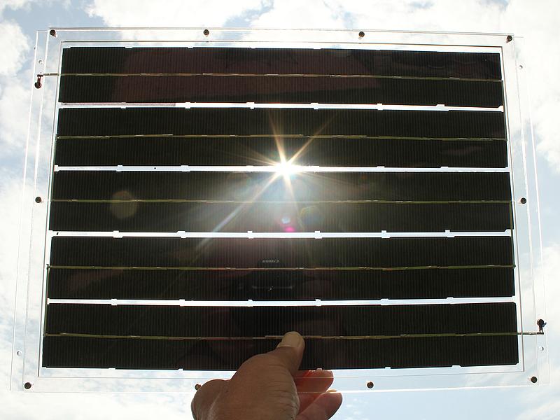 ![]() Art.Nr.: ASM6120 Artikel: 29 von 34 | Solarmodul 6 V / 120 mAASI Dünnschicht SolarmodulASI Dünnschicht Solarmodul aus Deutscher Fertigung. Hergestellt auf der Basis der Technologie des amorphen Siliziums. Solarmodule mit hoher Lebensdauer ohne Verschleiß. Lötanschlüsse auf der Rückseite. Nennspannung 6 Volt, Leerlaufspannung 11Volt, Kurzschlussstrom 120 mA, Leistung 860 mW, Maße 192 x 81 x 3,3 mm, Gewicht 124g | |
