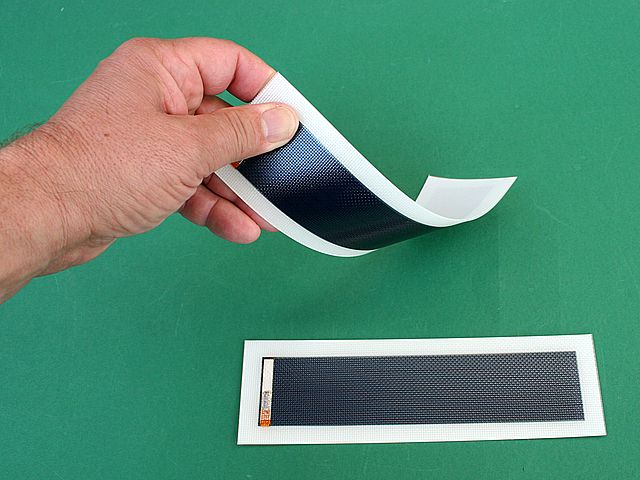 ![]() Art.Nr.: FSM03400 Artikel: 52 von 58 | flexibles SolarmodulSolarmodul 3 Volt / 400 mA / 1 Wflexibles Solarmodul / biegsamm, wetterfest, bruchfest, leicht, flexibles Solarmodul, Nennspannung 3 Volt / Leerlaufspannung 4,5 Volt / Nennstrom 340 mA / Kurzschlussstrom 400 mA / Leistung 1 Watt / Maße: 197 x 102 x 1,5 mm / Gewicht 39 g. Siliziumtechnik aufgedampft auf Edelstahlfolie, Einbettung Teflonfolie. Robuste wetterfeste Technik. Anschlüsse: Kupfer Lötpunkte auf der Rückseite. Anwendung: Modellbau, Auto, Boot, Motorrad, Flug, Camping, Schule, Kleidung, Rucksack. Standartmessbedingungen bei Solarmodulen: Lichtspektrum AM 1,5, Bestrahlungsstärke E = 1000 Watt/m², Zellentemperatur 25 C° | |