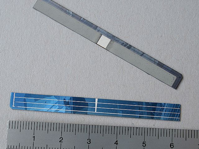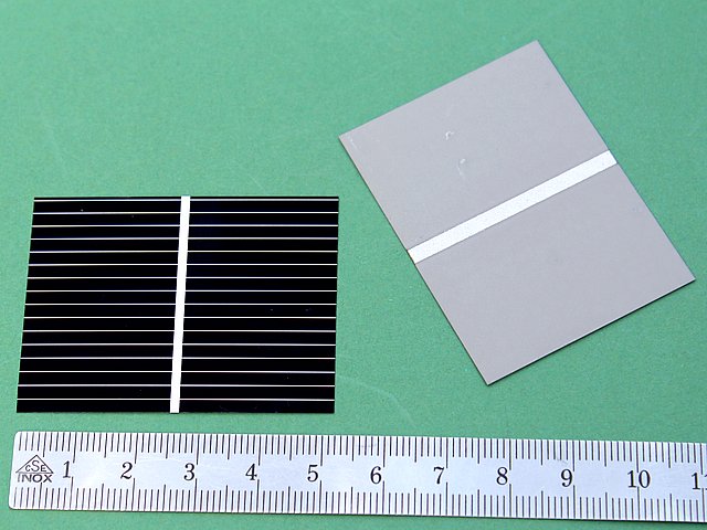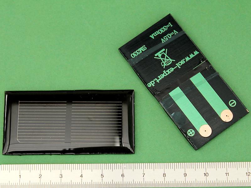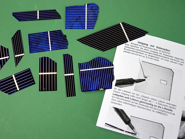 ![]() Art.Nr.: SZB10 Artikel: 29 von 58 | Solar-Bruchzellen10 Solarzellen-Bruchstücke für ExperimenteSolar-Bruchzellen 10 Solarzellen-Bruchstücke für Experimente, Solarversuche, Basteleien, Lötversuche, usw mit Anleitung "Umgang mit Solarzellen". Leerlaufspannung 0,6 Volt, Kurzschlussstrom je nach Größe 100 - 500 mA , Fläche aller Teilstücke ca. 120 cm². Monokristallin, POLARITÄT: Vorderseite Minusanschluss, Rückseite Plusanschluss, Lötstreifen 2 mm Breite. | |