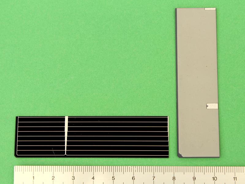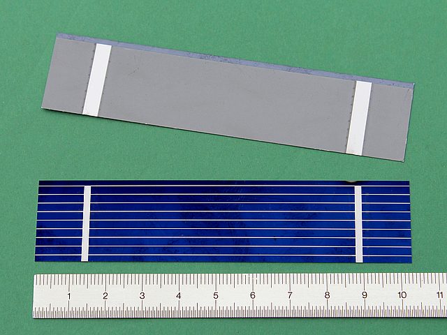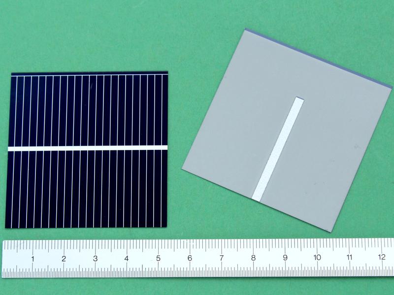 ![]() Art.Nr.: STSZ7878DB Artikel: 57 von 58 | Doppelsolarzelle nach dem Prinzip der Bifacial Solarzelle2 Solarzellen 78 x 78Doppelsolarzelle nach dem Prinzip der Bifacial Solarzelle. Bei dieser Solarzelle wurden die unteren (+) Seiten und die oberen (-) Seiten miteinander verbunden und Ausgänge an die Bananenbuchsen geführt. Technische Daten: 2 Solarzellen 78 x 78 a` Leerlaufspannung 0,61 Volt, Nennspannung 0,5 Volt, Kurzschlussstrom 2175 mA, Nennstrom 2045 mA, max. Leistung 1025 mWatt, PLEXI Ständer 150 x 125 x 30 mm, Ausgänge 2 Banenbuchsen, Gewicht 170 Gramm. Standartmessbedingungen bei Solarzellen: Lichtspektrum AM 1,5, Bestrahlungsstärke E = 1000 Watt / m², Zellentemperatur 25 C°. Bifacial Solarzellen sind Solarzellen, die Licht sowohl auf der Vorder- als auch auf der Rückseite aufnehmen. Auf der Suche nach höher- und höchsteffizienten Solarzellen wird immer wieder auch mit der bifacial (engl.: "zwei-gesichtigen") Solarzelle experimentiert. Je nach Licht- und Standortsituation erreichen beidseitige Solarzellen um bis zu 60% höhere Wirkungsgrade - dies bei geringerem Platzverbrauch und eingesparten Materialien. Vor diffus reflektierenden Hintergründen können bifacial Zellen sowohl die direkte Solareinstrahlung vorn als auch die indirekte Strahlung auf der Rückseite einfangen. Bei nicht nachführbaren, senkrecht stehenden statischen Elementen (z.B. an Autobahn-Schallwänden, Brückengeländern etc.) kann je nach Ausrichtung, z.B. die direkte solare Einstrahlung sowohl vormittags aus östlicher als auch nachmittags aus westlicher Richtung genutzt werden. | |