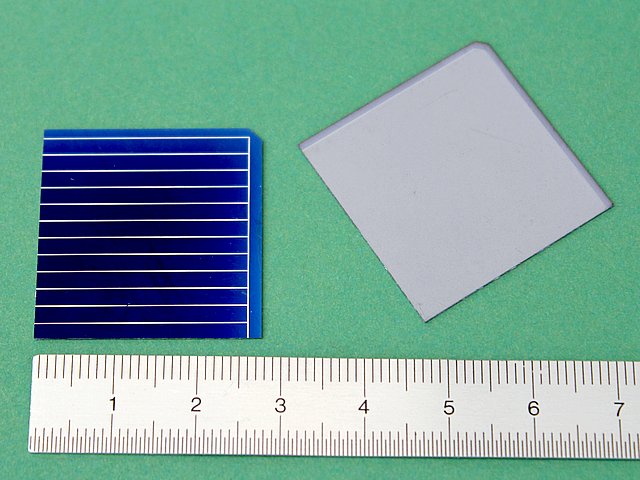 ![]() Art.Nr.: SZZ7852 Artikel: 24 von 58 | Solarzelle (lose Solarzelle)Solarzelle 0,61 Volt / 1427 mA / 670 mW / 51,5 x 78 x 0,3 mmSolarzelle 78 x 52 x 0,3 mm, Monokristallin, Verzinnte Lötstreifen, POLARITÄT: Vorderseite (Lötstreifen 2 mm Breite) Minusanschluss, Rückseite Plusanschluss, Leerlaufspannung 0,61 Volt, Nennspannung 0,5 Volt, Kurzschlussstrom 1450 mA, Nennstrom 1363 mA, max. Leistung 683 mWatt, Gewicht 1,91 Gramm. Standartmessbedingungen bei Solarzellen: Lichtspektrum AM 1,5, Bestrahlungsstärke E = 1000 Watt / m², Zellentemperatur 25 C°. Hinweis: Wir schneiden aus einer Solarzelle 156 x 156 mm mit abgeschrägten Ecken 6 Stück. Dadurch erhalten Sie z.B. bei einer Bestellung von 12 Stück, 8 mit abgeschrägten Ecken und 4 ohne Abschrägungen. | |
