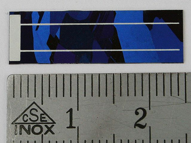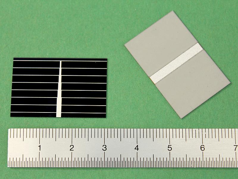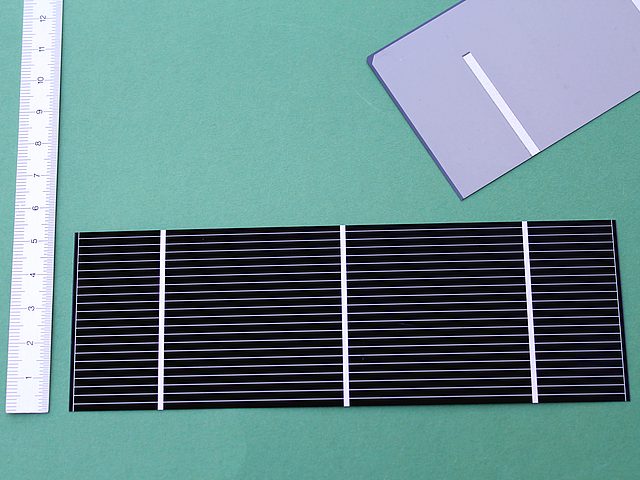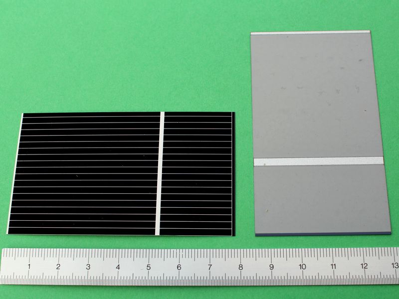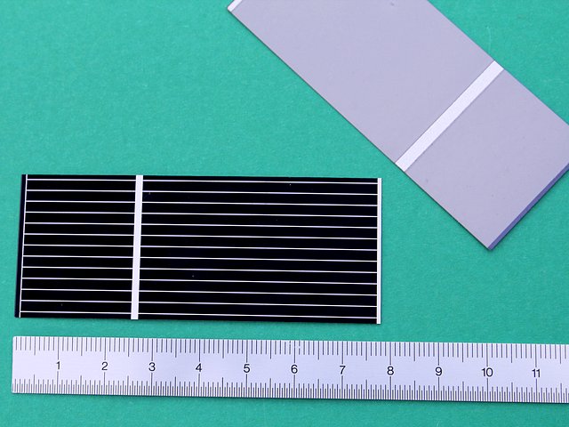 ![]() Art.Nr.: SZZ7821 Artikel: 13 von 58 | Lose Solarzelle 78 x 21 mmSolarzelle 0,61 Volt / 585 mASOLARZELLE aus Deutscher Fertigung: Material monokristallines Silizium, Maße 78 x 21 mm, Leerlaufspannung 0,61 Volt / Nennspannung 0,5 Volt / Kurzschlussstrom 585 mA / Nennstrom 550 mA / Leistung 275 mW, Gewicht 0,8 Gramm. Standardmessbedingungen bei Solarzellen: Lichtspektrum AM 1,5, Bestrahlungsstärke E = 1000 Watt / m², Zellentemperatur 25 C°. | |