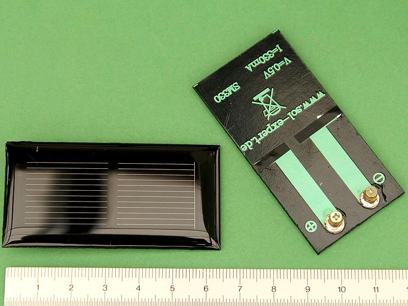 ![]() Art.Nr.: SZS05330 Artikel: 56 von 58 | Vergossene Solarzelle 0,5 V / 330mASolarzelle mit Schraubanschlüssen vergossenVergossene Solarzelle 0,5 V / 330mA Solarzelle mit Schraubanschlüssen, vergossen, Leerlaufspannung 0,5 Volt, max. Strom 330mA, Nennleistung 0,1485 Watt, Maße: 65 x 33 x 3 mm, Gewicht 6,3 g. Diese Solarzelle eignet sich zum Basteln, Experimentieren, Bau von Solarmodellen. Standartmessbedingungen bei Solarzellen: Lichtspektrum AM 1,5, Bestrahlungsstärke E = 1000 Watt / m², Zellentemperatur 25 C°. | |