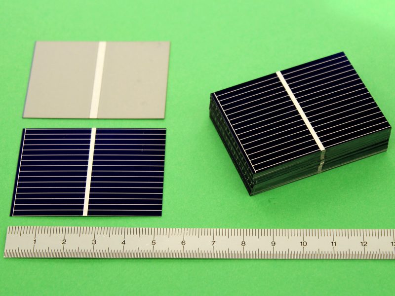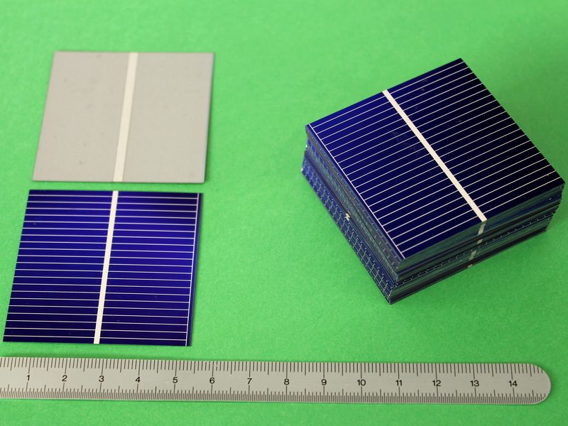 ![]() Art.Nr.: 100SZ5239 Artikel: 19 von 58 | 100 Solarzellen (lose Solarzelle)100 Solarzellen 0,61 Volt / 725 mA / 341 mW / 52 x 39 x 0,3 mm100 Stück Solarzellen 0,61 Volt / 725 mA / 341 mW / 52 x 39 x 0,3 mm, Monokristallin, Verzinnte Lötstreifen, POLARITÄT: Vorderseite (Lötstreifen 2 mm Breite) Minusanschluss, Rückseite Plusanschluss, Leerlaufspannung 0,61 Volt, Nennspannung 0,5 Volt, Kurzschlussstrom 725 mA, Nennstrom 681 mA, max. Leistung 341 mWatt, Gewicht 0,96 Gramm. Standartmessbedingungen bei Solarzellen: Lichtspektrum AM 1,5, Bestrahlungsstärke E = 1000 Watt / m², Zellentemperatur 25 C°. | |