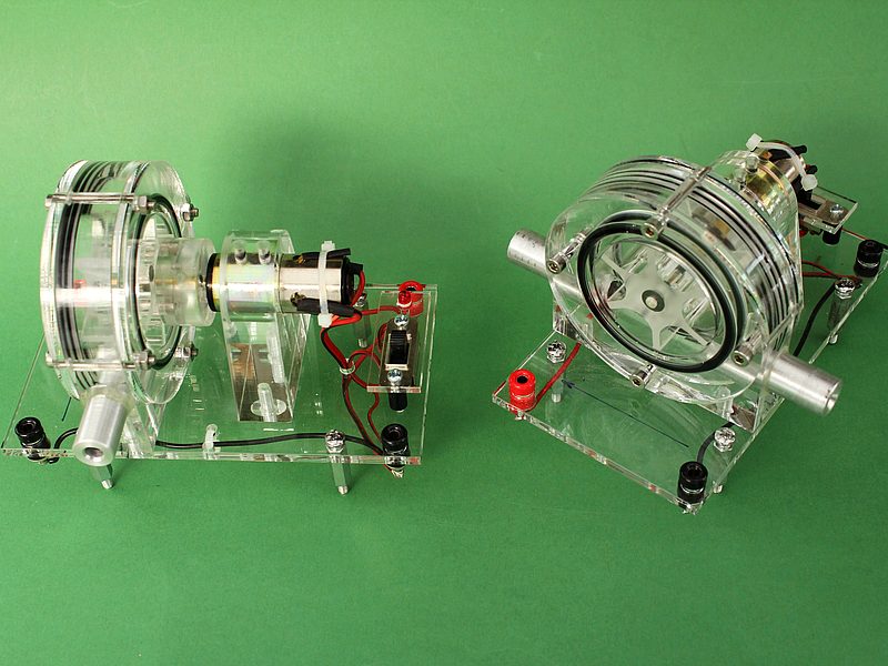 ![]() Art.Nr.: KG3557 Artikel: 8 von 20 | Kurbelgenerator 45 WattKurbelgenerator mit 45 Watt Leistung45 Watt elektrische Leistung durch Muskelkraft Energieerzeugung (Umwandlung) durch Muskelkraft: Ein Gleichstrom Kurbelgenerator mit welchem verschiedene Geräte wie, LEDs, Radios, Motoren, Getriebemotoren, Modelleisenbahn usw. betrieben werden. Weiterhin können verschiedene Versuche durchgeführt und Goldkondensatoren geladen werden. Leistung bis zu 45 Watt, max. erzeugte Spannung 20 Volt, Kurzschlussstrom 2500 mA. Erzeugte Spannungen und Kurbeldrehzahl (UPm) an der Kurbel: 6 Volt ca. 40 Upm, 12 Volt ca. 130 Upm, 20 Volt ca. 230 Upm. Bei einem 10F Goldcap beträgt die Ladedauer ca. 20 Sekunden, der Ladezustand kann während der Ladung durch Digitalvoltmeter überwacht werden (bei ca. 2,8 Volt ist der Goldcap voll). Maße: (L x B x H) 210 x 150 x 120 mm, Gewicht 1170 Gramm. Technische Daten: Generator Faulhaber Glockenankermotor Serie 3557K020CS 35 mm Ø x 57 mm Länge, Zahnräder aus Kunstharz Modul 1,0 / 60 und 12 Zähne, zweistufiges Getriebe mit Übersetzung 25:1, Wellen Messing kugelgelagert, Kurbel Holzgriff / Kurbelhebel ALU / Kurbelwelle Messing 6 mm Ø, Plexiglasplatten 10 mm Materialstärke, elektrischer Anschluss über 4 mm Bananenbuchsen. Zum Lieferumfang gehört auch eine Benutzeranleitung. | |