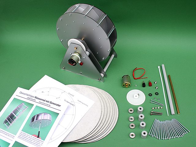 ![]() Art.Nr.: OWR19529 Artikel: 4 von 20 | Oberschlächtiges Wasserrad mit GeneratorWasserrad mit Generator, Laufrad Ø 194 mm, Höhe 225 mmLaufrad Ø 194 mm, Höhe 225 mm, Kammerzahl 12 Bausatz für Fortgeschrittene (unbearbeitet: Teile müssen gesägt, gefeilt,, gebohrt und Gewinde geschnitten werden) mit Bauanleitung und Zeichnungen. Möglich iste s auch den Bausatz als Fertigteilbausatz zu beziehen, der nur noch montiert werden muss. Der Mehrpreis beträgt 30,00 €. Bitte in Kommentar vermerken falls Sie dies wollen und den Rechnungsbetrag um 30,00 € erhöhen. Technische Daten: Laufrad Ø 194 mm, Höhe 225 mm, Füllkammerbreite 49 mm, Kammerzahl 12, Ständerbreite 175 mm, Ständertiefe 130 mm, Drehzahl ca. 100 Upm, Generator DC-Motor mit Ringmagnet, Generatorspannung 3 - 6 Volt, Generatorstrom max. ca. 60 mA, Material / Plexiglas mit Beschichtung , Montageteile Aluminium, Elektrischer Anschluss: , 4 mm Bananenbuchsen Material: 8 Plexiglasscheiben 194 mm Ø , 1 Generator, 1 Zahnrad M 0,5 / 9 Z, 1 Zahnrad M 0,5 / 120 Z, 2 Bananenbuchsen, 1 Kabellitze, 4 Stellringe 16 Ø x 7 mm, 4 Distanzteile 16 Ø x 19,5 mm, 1 Achse 6 Ø x 150 mm, 1 Alustab 10 x 204 mm, 24 Schrauben M3 x 55, 4 Schrauben M3 x 6, 1 Schraube M 3 x 9, 2 Schrauben M 3 x 30, 2 Schrauben M 4 x 8, 2 Schrauben M 4 x 32, 1 Schraube M 2,5 x 4, 2 Muttern M3, 2 wartungsfreie Gleitlager 6 x 8 x 4 mit Bund, Bauanleitung. | |