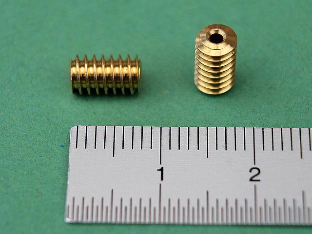 ![]() Art.Nr.: MS0304 Artikel: 12 von 94 | Schnecke Modul 0,3 / 4,5 mm Ø x 8 mm Ø Längefür Modelleisenbahn und ModellbauModul 0,3 / Kopfkreis 4,5 mm Ø, Teilkreis 3,9 mm Ø, Länge 8,0 mm, Bohrung 1,5 mm Ø | |