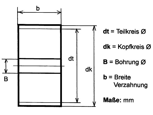 ![]() Art.Nr.: SRS03100 Artikel: 71 von 94 | Stirnzahnrad mit Bund StahlModul 0,3 / 100 Zähne / Bohrung 2,0 mmModul 0,3 / Zähnezahl 100, Kopfkreis 30,6 mm Ø, Teilkreis 30 mm Ø, Bund 22 mm Ø, Gesamtbreite 7 mm, Breite der Verzahnung 3,5 mm, Bohrung 2,0 mm Ø | |
