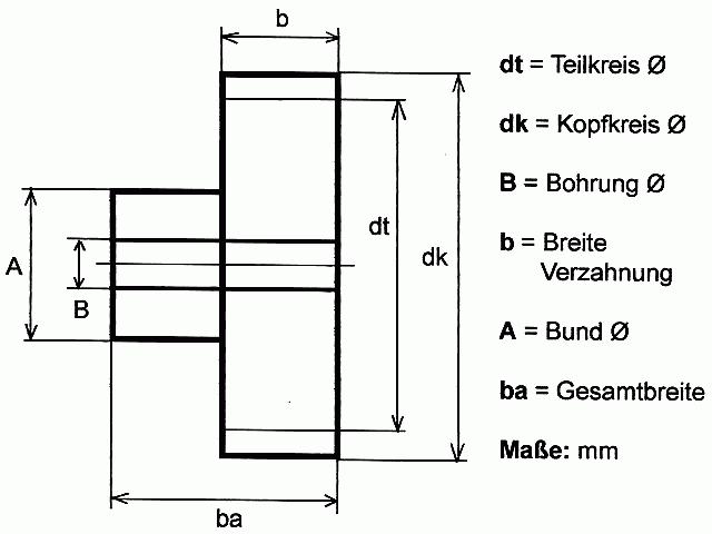 ![]() Art.Nr.: 281020 Artikel: 51 von 69 | Stirnzahnrad mit Bund aus AzetalharzStirnzahnrad Modul 0,5 / 20 Zähne / Bohrung 4,0 mmModul 0,5 / Zähnezahl 20, Kopfkreis 11 mm Ø, Teilkreis 10 mm Ø, Bund 8 mm Ø, Gesamtbreite 10 mm, Breite der Verzahnung 3 mm, Bohrung 4,0 mm Ø | |